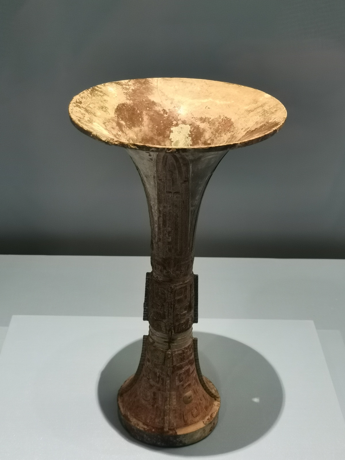 觚[gū],是中国古代一种用于盛酒的容器,也用作礼器。圈足,敞口,长身,口部和底部都呈现为喇叭状。这种器物初现于二里头文化,到西周中期已十分罕见。盛行于商代和西周早期。