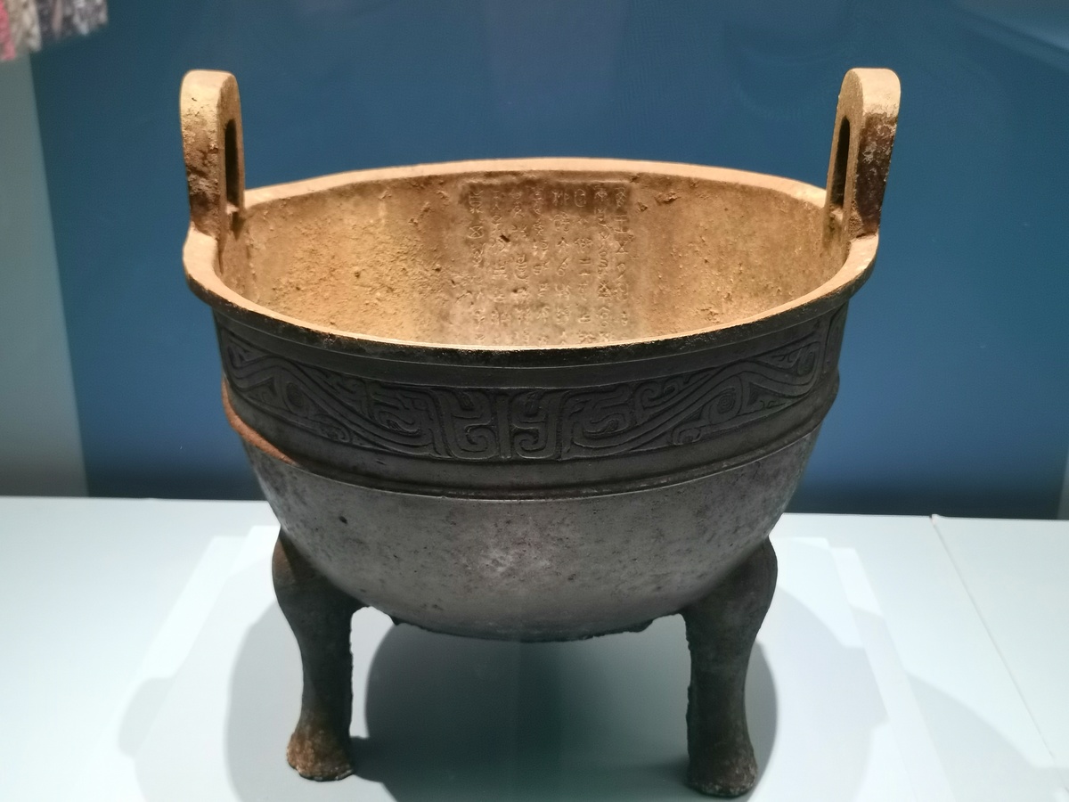 鼎,这个字就不劳烦策展人了。不过这次展览上有一件“南宫柳”铜鼎(图13)非常珍贵,年代为西周,国家一级文物。这件鼎内的铭文显示,它的主人叫做南宫柳,其祖先曾经跟随西周王朝第一代天子——武王征服了商朝,并为此立下汗马功劳,名垂史册。铭文记录了南宫柳接受了周王任命的掌管王朝军队后勤的官职和颇具象征意味的赏赐。