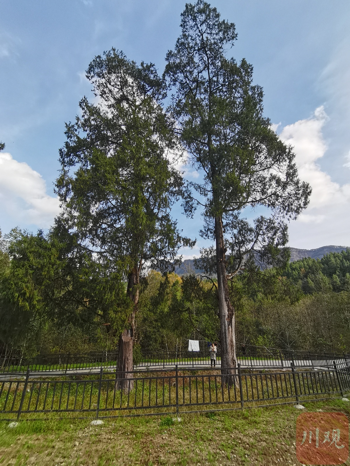 剑阁县剑门关镇被保护起来的两株古柏。(四川在线记者 王代强 摄)