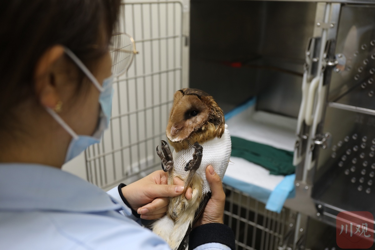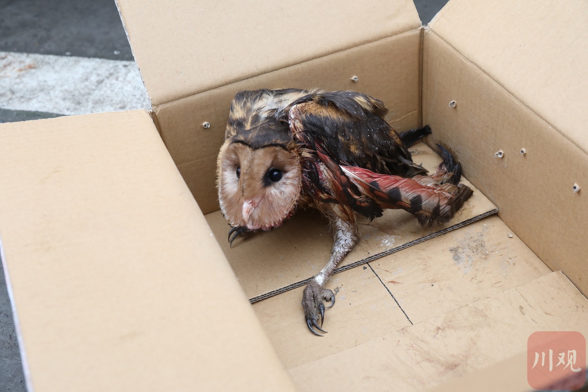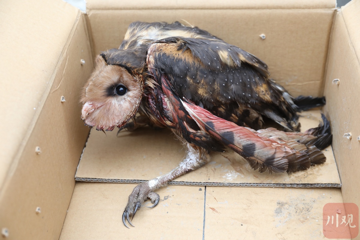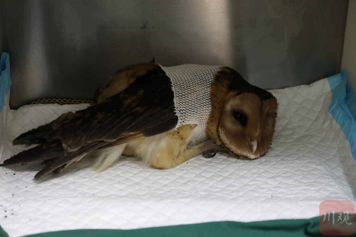 这只“怪鸟”来头可不小。“来到现场后,我们发现这是一只翅膀受伤的猴面猫头鹰(国家二级保护动物,又名草鸮),现场查看后发现伤情较重,初步判断左翅骨折,还在流着血,只能送往市区一家符合条件的动物医院救治。”龙马潭区农业农村局动植物疫病虫害防控站工作人员李华蓉表示,经过该动物医院系统治疗后,猴面猫头鹰的伤势正在恢复中。