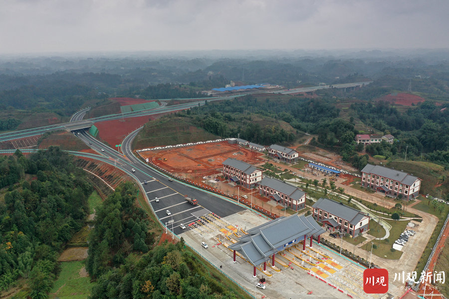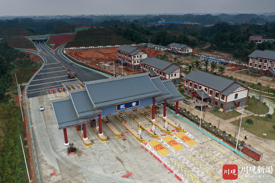 2020年12月15日,航拍的成宜高速四川省宜宾市叙州区观音收费站段。经过工程建设者们夜以继日抢抓工期,由四川铁投集团主导投建的成宜高速全线交通标志、护栏等收尾工程基本完成并具备通车条件,将于12月底试通车运营。