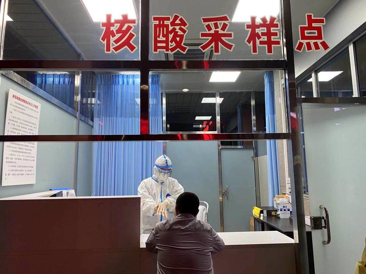 西南医科大学附属医院核酸检测点,6个取样室只有2个取样室正在进行取样