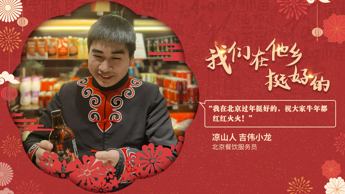 “我在北京过年挺好的,祝大家牛年都红红火火!”