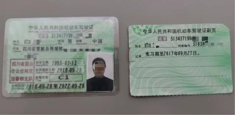 随后,公安机关立即对白某进行了控制,并将其车辆和本人一同带回大队进行进一步询问:原来,白某25岁,雷波人,彝族,平时在眉山和妻子儿子一同生活。4年前的某一天白某去眉山某车管所考驾驶证,因为准备不充分没能通过。从考场出来的他心灰意冷,这时候一位“串串”盯上了他。“串串”告诉白某,科目一考不过没有关系,只需要“一万二加几条烟”,就可以帮白某弄一本“绝对真实”的驾驶证。“串串”的这句话对白某来说可谓是瞌睡遇到了枕头——正合心意,于是白某便立即支付了费用——一万二现金以及三条香烟,并在几天后如愿以偿拿到了心心念想的驾驶证。
