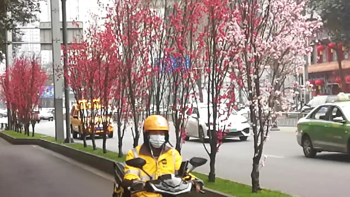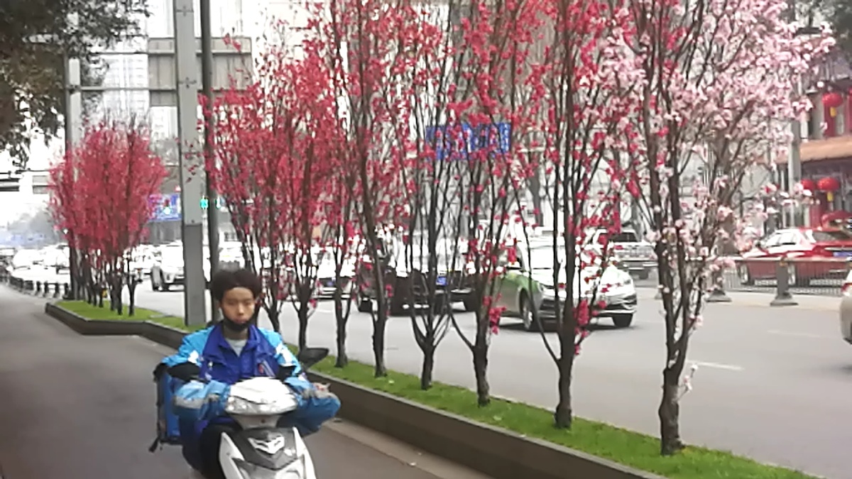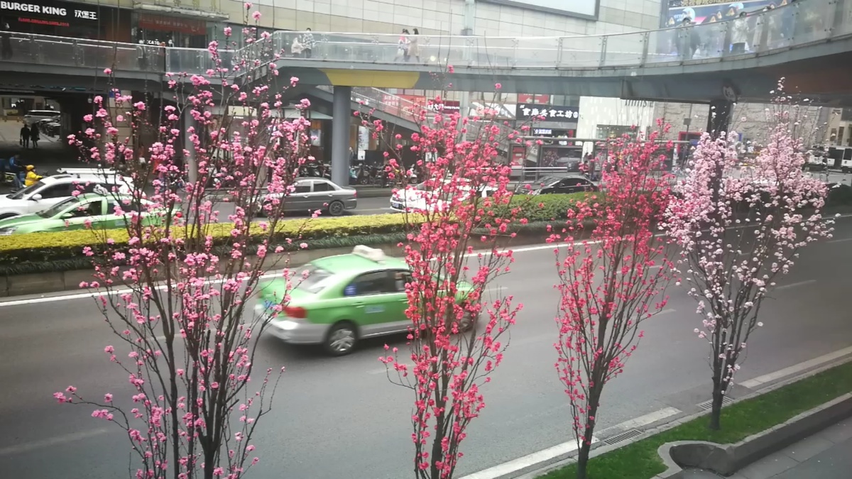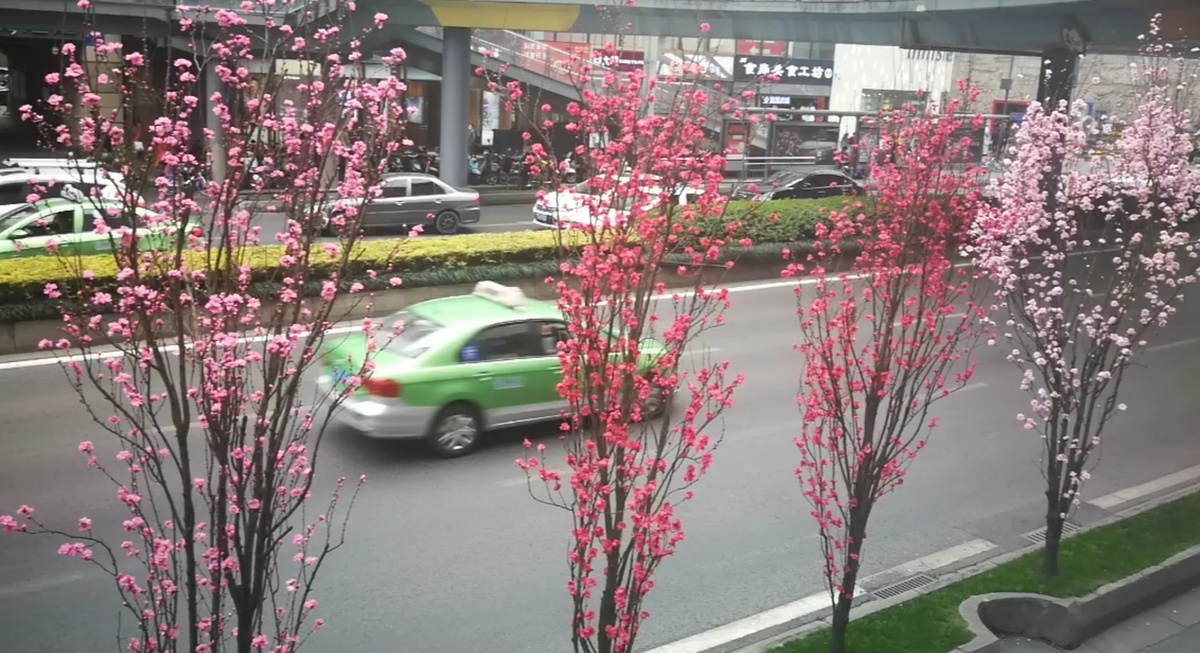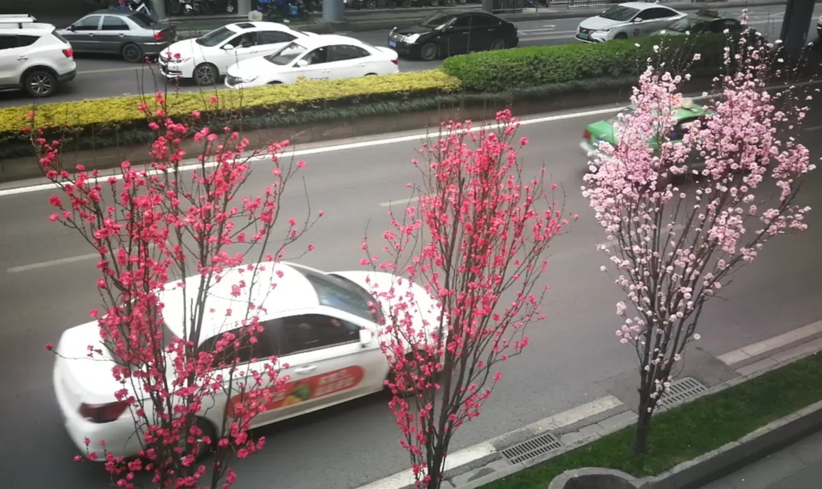 2月25日,成都市蜀都大道两侧绿化带上的观赏桃花开始盛开,吸引过往市民们前来游览观赏。观赏桃花有粉红色、白色、红色给公园城市增添了多彩春天气息。