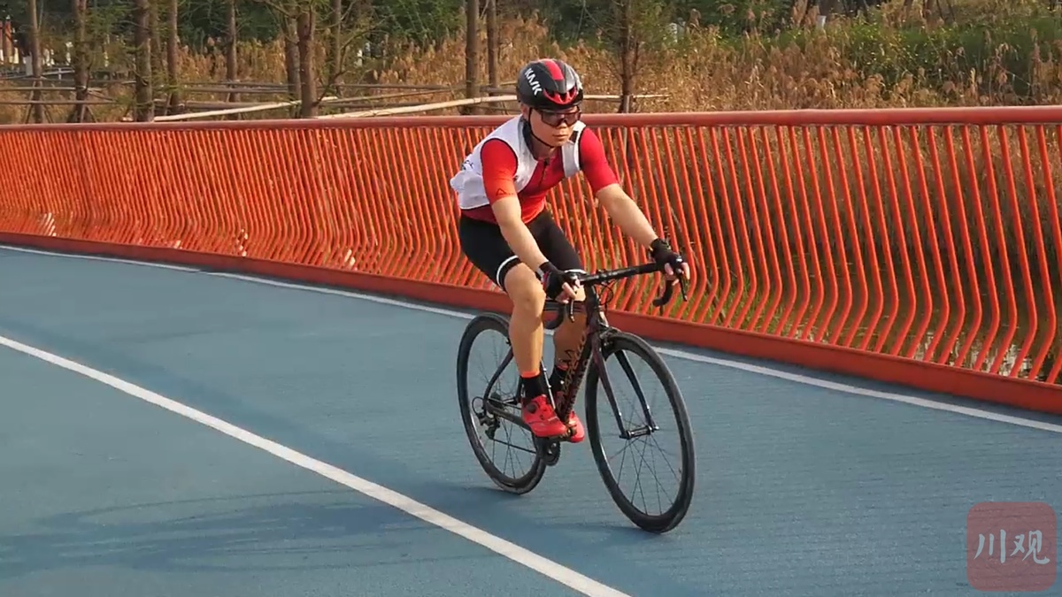 市民在湖上绿道打卡锻炼身体。