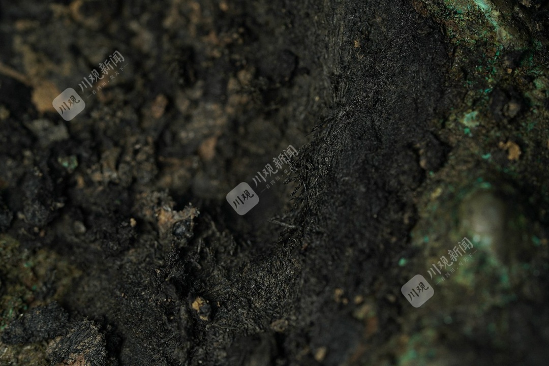 在发现纺织物残痕的青铜器周围,他们搜索一切疑似土样。终于,丝绸在2021年1月31日现身。