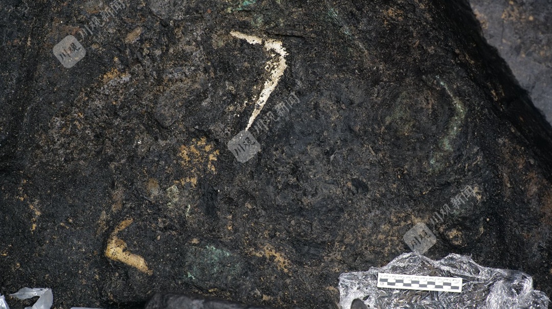 整体切割提取的部分“纺织品痕迹”(三星堆考古工作站供图)