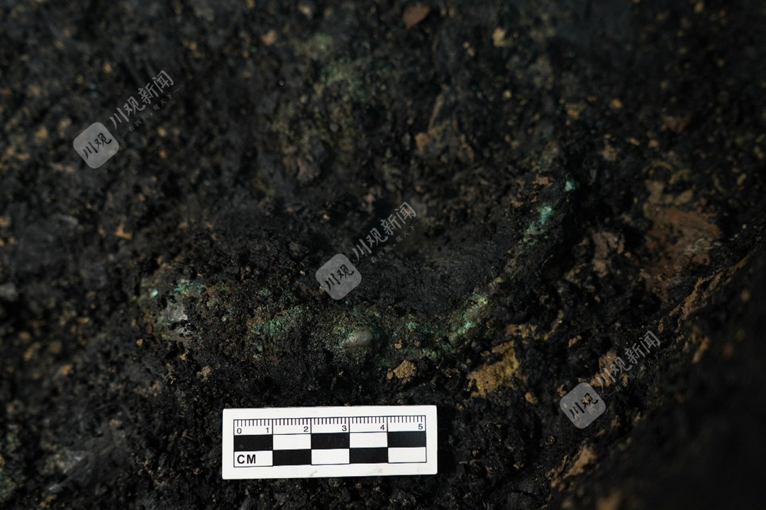 事实上,在此之前,考古人员已在4号坑的灰烬层,从上到下每隔3厘米采样,从中检测到了蚕丝蛋白的存在。如今的任务,便是真正找到丝质物的残痕。