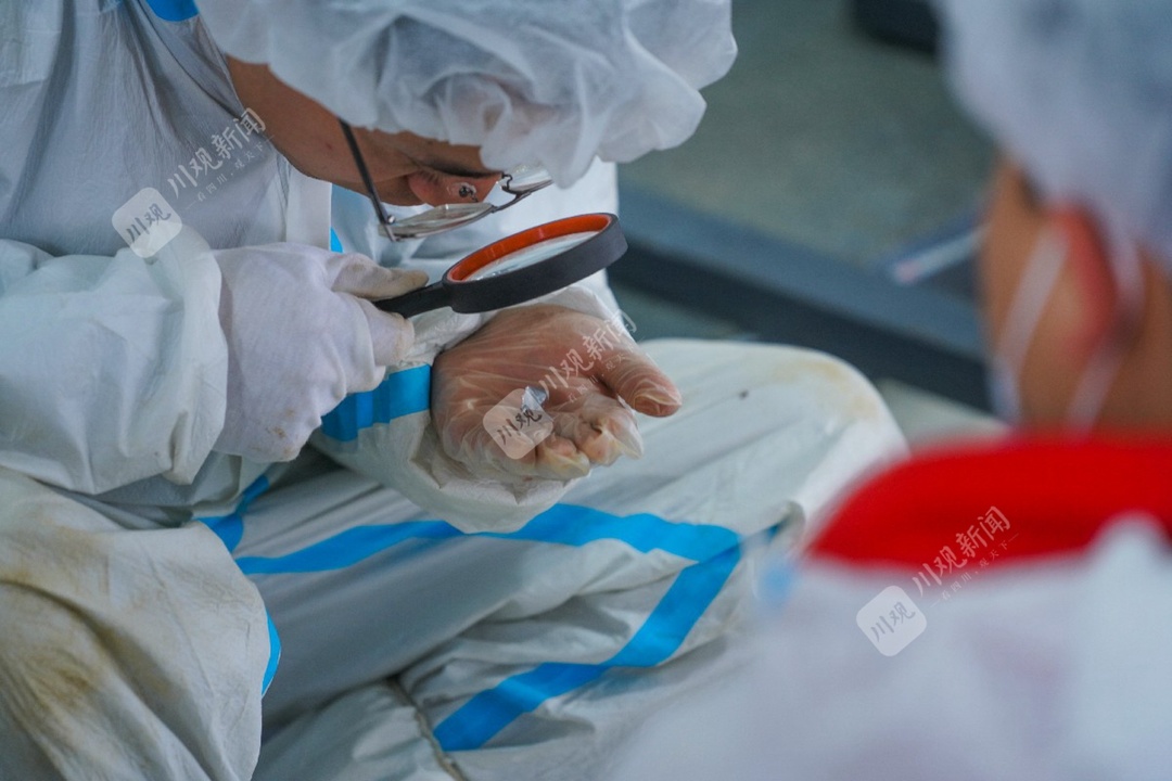 怎么发现丝绸?在三星堆祭祀区还未正式发掘前,周旸为考古人员来了一次“火眼金睛”的现身说法。在参观三星堆博物馆时,她指着展柜里的一件青铜眼泡说,“那里很可能有丝!”