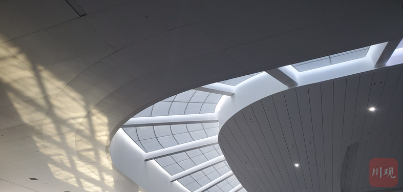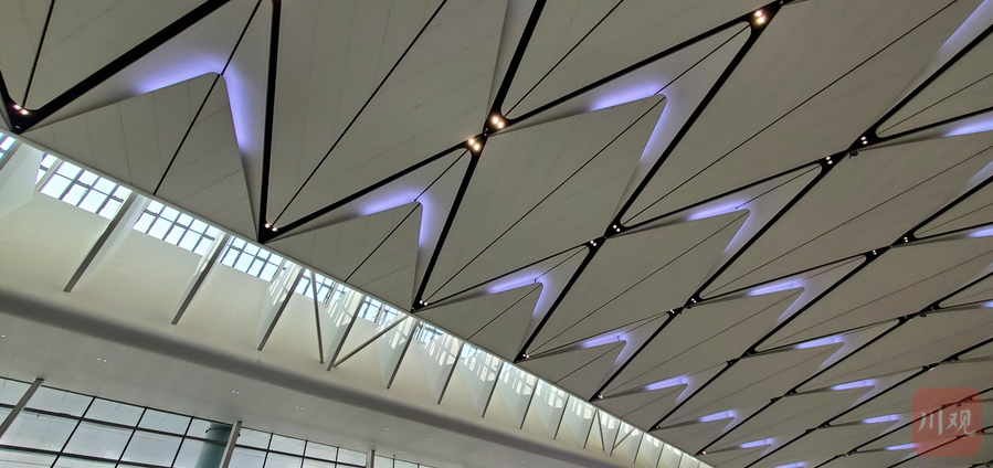 一对“神鸟”牵着手,将一轮红日圈在中央……天府国际机场的航站楼造型,已为公众熟知。不过,与规划图上一身洁白羽毛不同,实景呈现的航站楼,实则身披铁甲,阳光下折射出金属光芒,科技感、未来感十足。