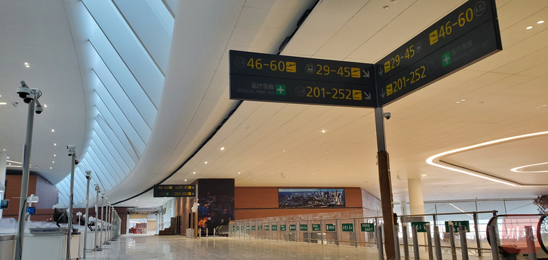 不仅外部构型,航站区的内部流程、系统设置,也处处体现着“舒适、高效”。乘坐高铁、地铁等公共交通到机场,在到达站厅即可自助办理值机、行李托运,“甩手”进航站楼;到达航站楼后,从值机到登机,可全程自助办理……