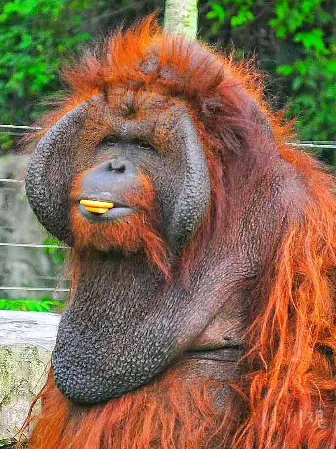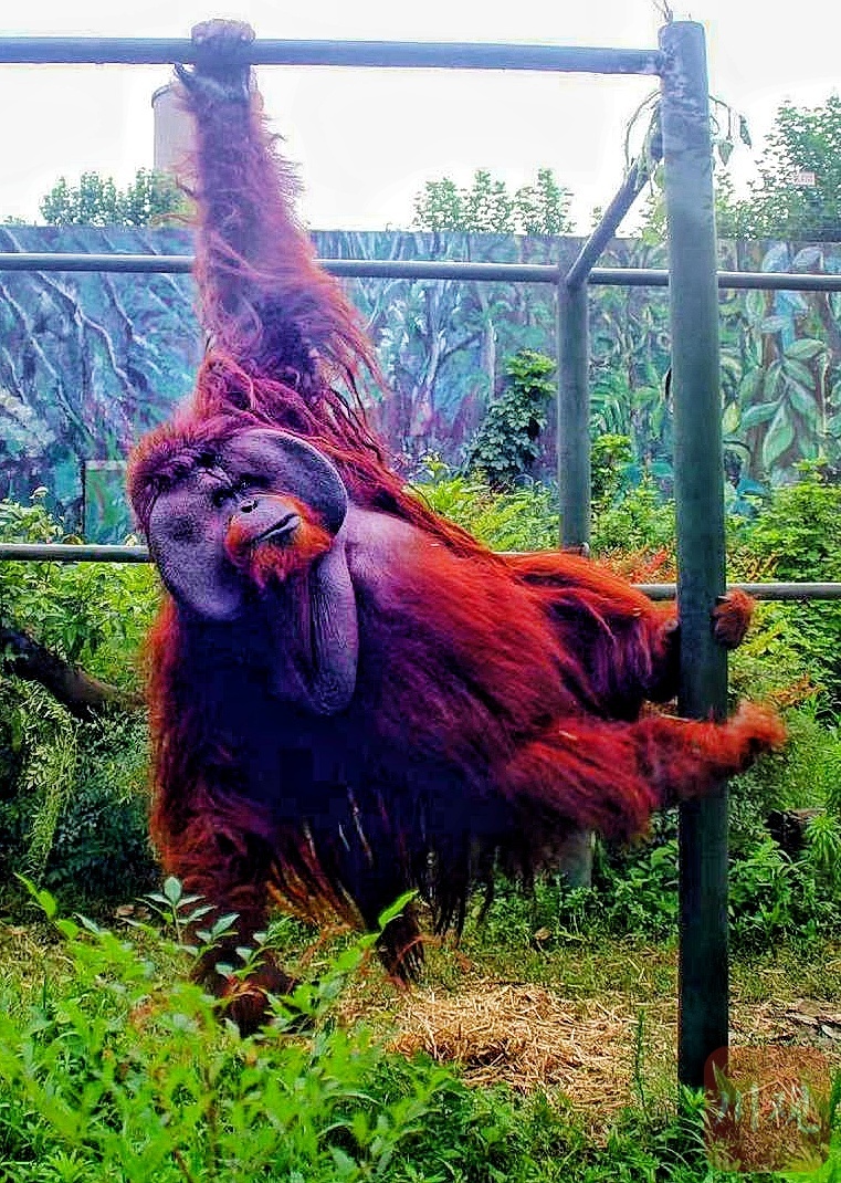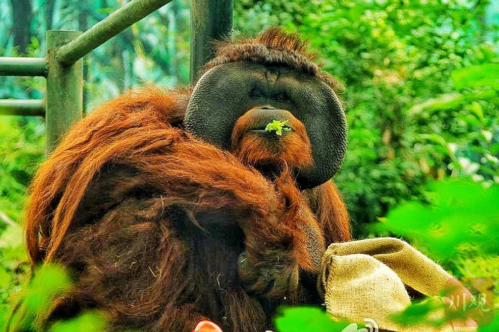 5月28日,成都动物园类人猿馆,红猩猩“播谊”正端坐户外环视着新环境。
