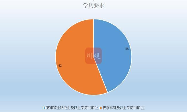为满足各领域发展所需,此次招聘对人才的学历要求普遍较高,其中,要求报名招聘人员具有硕士研究生及以上学历的职位有33个;要求报名招聘人员具有本科及以上学历的有42个。同时,除专业背景外,此次招聘还要求应聘人员应具有2至10年不等的相关从业经历并取得相关职(执)业资格、专业技术资格等。