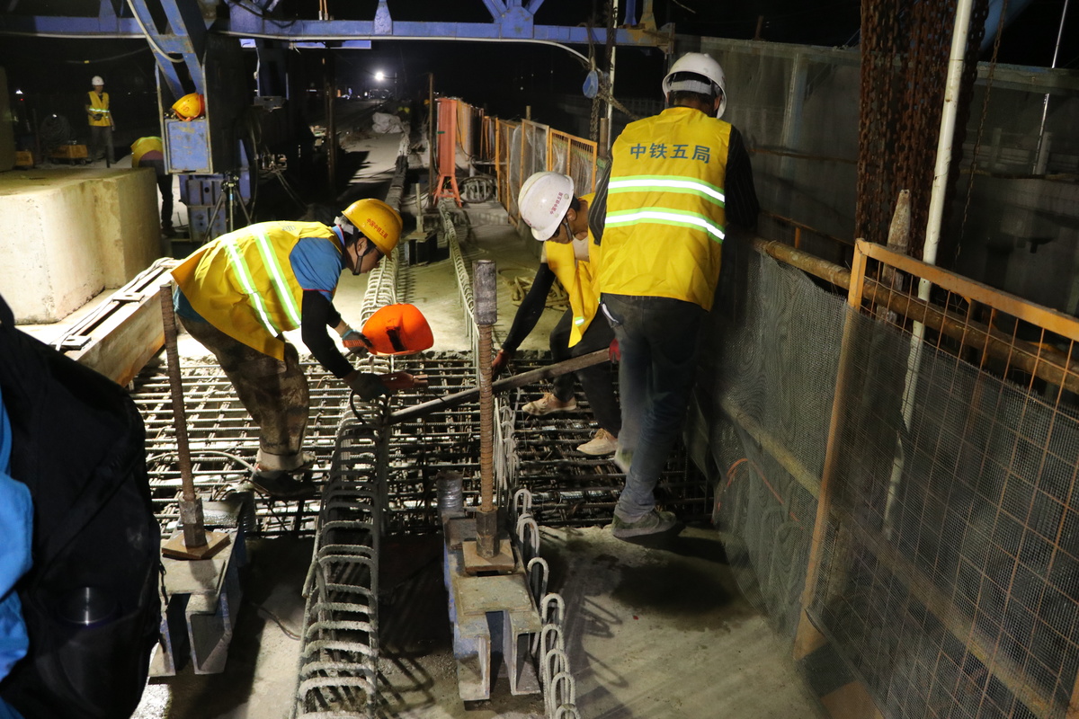 为此,项目部组织精兵强将,在下穿绵泸高铁门式墩的7孔支架现浇简支梁和平行绵泸高铁的渡线道岔连续梁,采用了钢管立柱、贝雷梁现浇和滑模施工工艺,大大减少模板拆装需要的天窗时间,现已顺利完成混凝土浇筑及支架拆除。