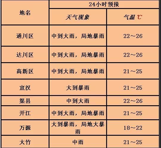 具体来看,万源、宣汉、通川区、达川区、开江有大到暴雨(30-80毫米),万源和宣汉个别地方可能超过100毫米;大竹、渠县中到大雨,局地暴雨(20-60毫米);强降水时段主要集中在午后到17日晚上,最大小时雨强30-60毫米。