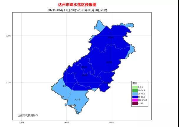 6月17日15时,达州市气象台发布暴雨蓝色预警,预计17日午后到18日白天,达州有一次明显的降水天气过程。