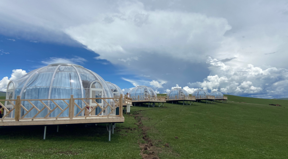 然而,就是这样的美景地,是炉霍县最偏远的乡镇之一,之前被遗忘在群山间,处于闲置状态。2017年,宗塔乡干部群众商定而谋划,通过探索牧区产权制度改革盘活富足的“牧旅资源”,同年5月,宗塔乡成立了以全乡8个行政村为股东的炉霍县宗塔百姓乐牧业有限责任公司,按照“党建引领、支部带头、村民参与、公司经营”模式,发展集特色藏餐中餐、藏式酒水餐吧、全景帐篷包间、黑帐篷星空营地、霍尔崩科民宿、草原越野为一体的牧旅文化特色度假村。