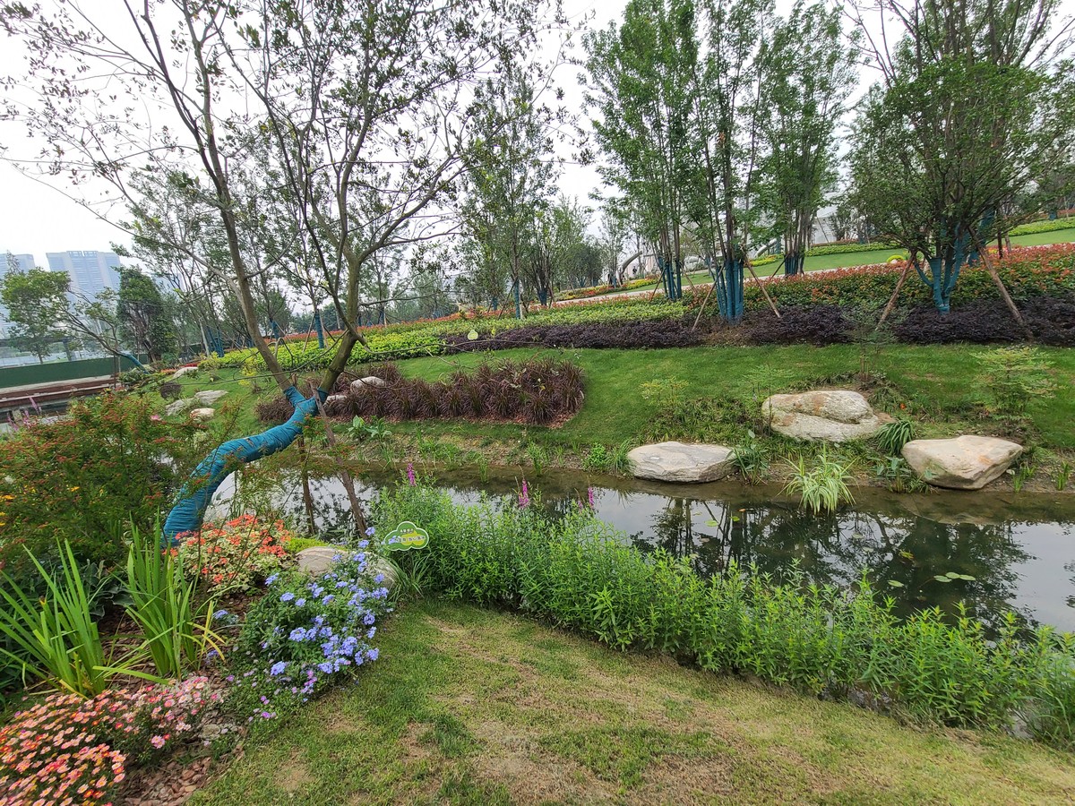 城市美学,体现在色彩上,也体现在空间层次上。在锦江公园金牛段,与会队伍在临水雅苑河堤的一个小转角停了下来,眼前的一方井盖留住了他们的脚步。看到井盖上的熊猫画像,有人想到了绿道文创营造的亲和力,有人想到了植入消费场景的高品质策划,而最引人注目的,还是这一片小景观里的细腻层次——通过引入上海建工集团的设计、施工,在小转角造了一个由草坪、灌木组成的5层立体绿化,讲精致、重细节、有品质。并且,水边没有做拦挡,方便游人进入,富有亲和力,体现人本化。