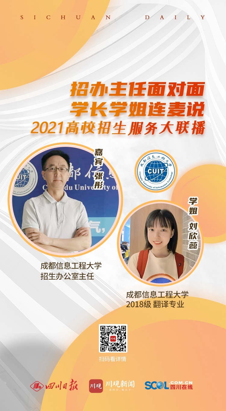 6月25日,由川观新闻重磅推出的“招办主任面对面 学长学姐连麦说”2021高校招生服务大联播第三场来袭!成都信息工程大学招生办主任张彤做客大联播,为考生和家长解读今年招生政策,解答热点问题。
