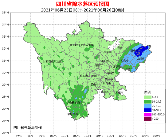 昨夜成都市大部分地区有小雨到中雨降落,东部部分地方还有大雨或暴雨光临。据实况监测,6月25日7时,成都市均温20.9℃。成都市气象台预计今天白天阴天有小雨,东部局部地方中雨到大雨,气温21~27℃。