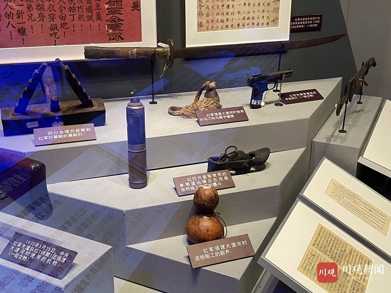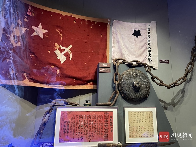 展览中,红军长征的内容很丰富,既有实景雪山,还有大量图片和珍贵文物。其中,有不少红军长征在四川留下的影像、实物等展陈,反映了红军在极其险恶和艰苦的条件下不畏强敌,不怕牺牲,英勇顽强的意志品格,展现了伟大的长征精神。让我们随着这些展陈一起重温红军长征在四川那段伟大的岁月。