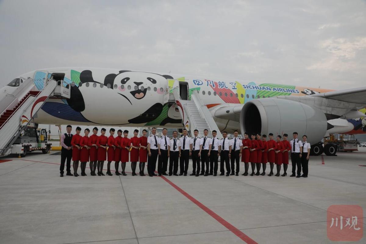 钟华:这架飞机是川航第二架熊猫彩绘A350,很多网友都亲切称它为“熊二”,A350也是目前全球最先进的一款飞机。我和这架飞机还是很有缘,因为2019年我和我们飞行部党委书记刘彤一起从法国图卢兹接回了这架飞机。这架飞机有着先进的设备,非常高效、安静,能够给旅客带来舒适的乘机体验。
