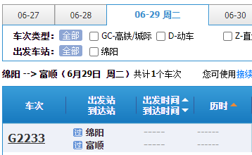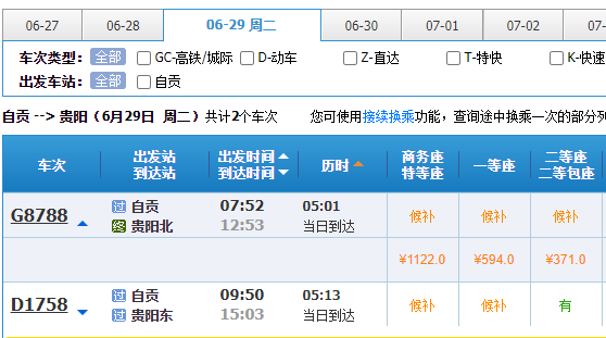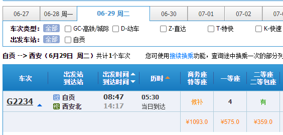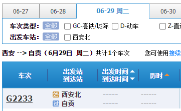 据中国铁路12306订票系统发布自贡高铁站票务信息,6月27日起,自贡开售到成都、西安、贵阳、广州等地的多趟班列车票。