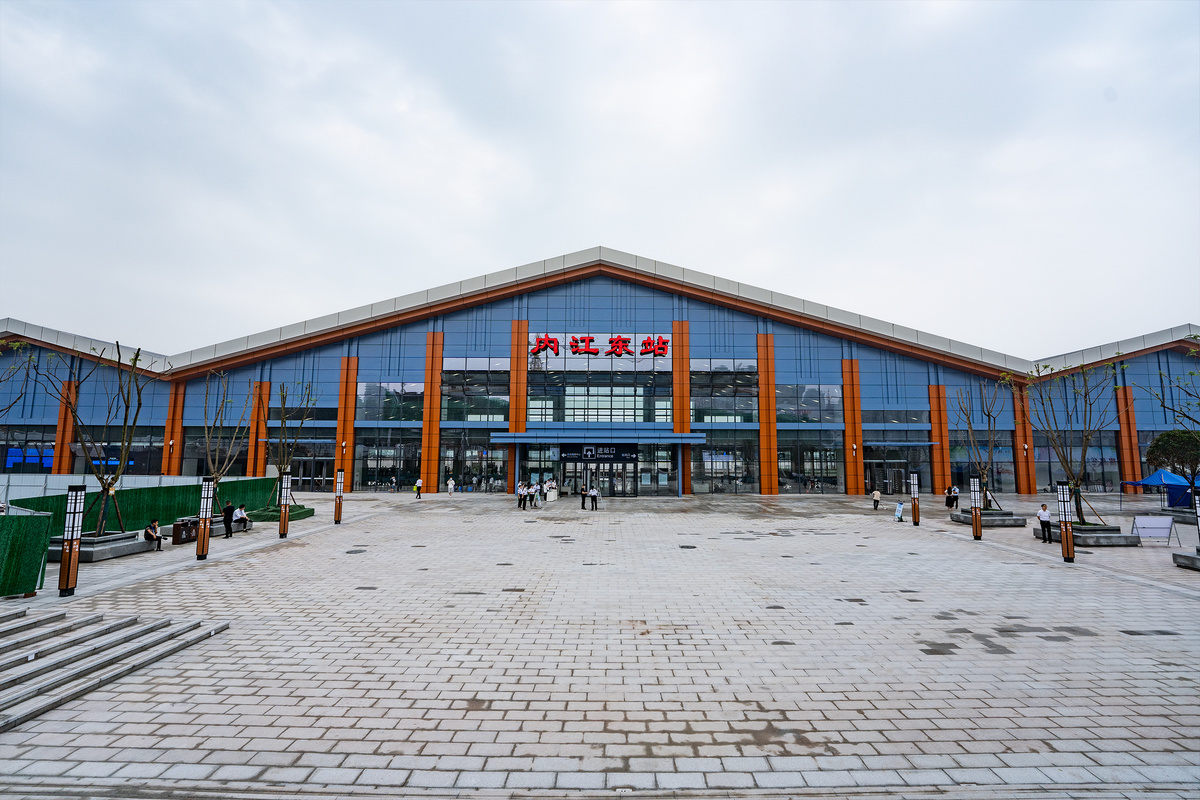 当天上午,记者来到内江东站并乘坐首趟G8786次列车体验。此时独具特色的内江东站站房如山峦叠起,三座山形屋顶山形与通透的幕墙形成对比,使得建筑风格极富韵律。