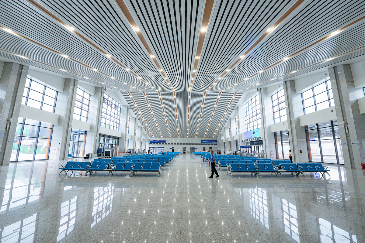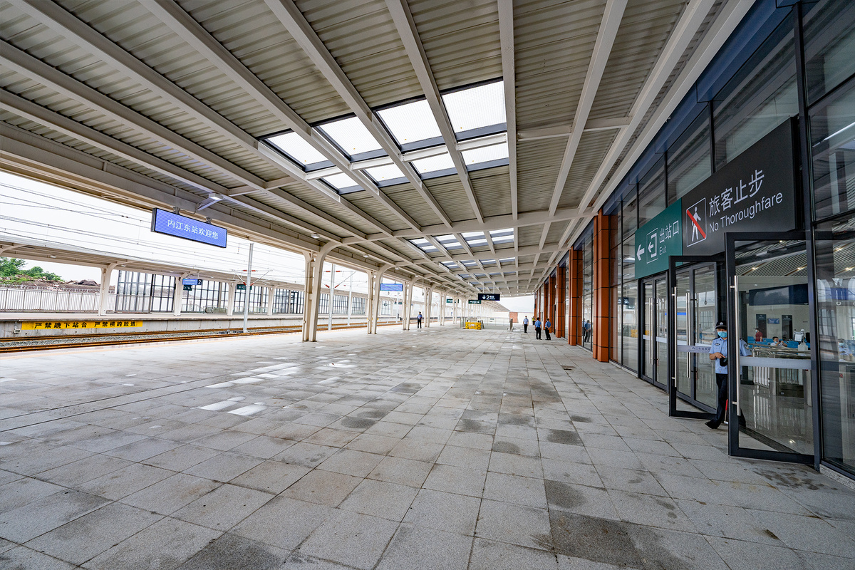 进入内江东站内部,站内设置相较普通车站也有着不小的变化,“我们内江东站内只设有一个候车大厅,而所谓的售票厅也改成了综合服务中心,与候车大厅相连。这意味着,乘客可直接在候车大厅内进行购票、退改签,这将很大程度节省乘客的时间。”川南城际站房二标段项目经理李章坚表示,除此之外,乘客在内江东站乘车,从进站到上车只需在进入站台时刷一次身份证。