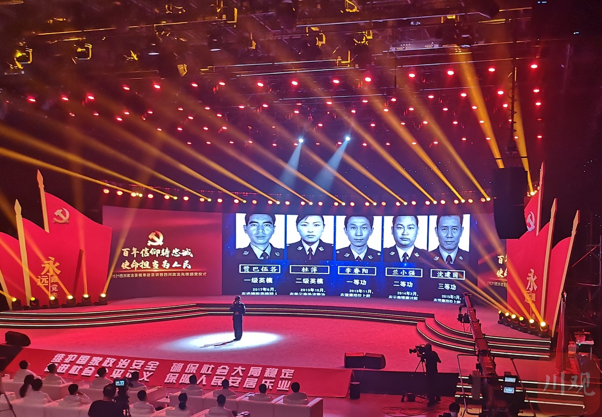 6月28日,由省委宣传部、省委政法委、省政法队伍教育整顿领导小组办公室主办的“2021四川政法英模事迹宣讲暨四川政法先锋颁奖典礼”在成都举行。