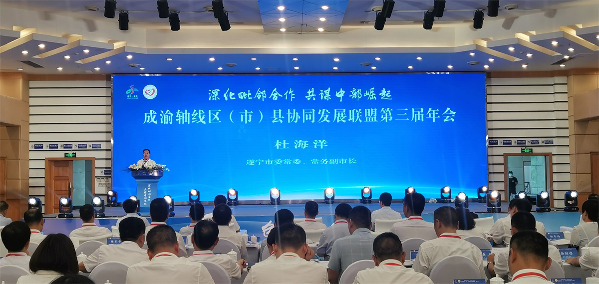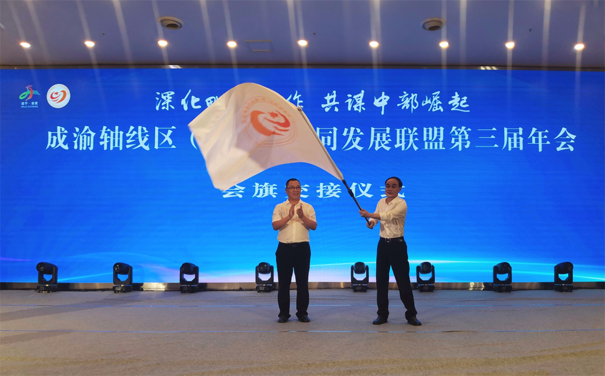 6月28日,成渝轴线区(市)县协同发展联盟第三届年会在遂宁市安居区举行。会议期间,遂宁安居区、重庆璧山区、资阳市安岳县等成渝轴线上14个区(市)县聚焦产业发展、基础设施、社会事业、环境保护4个领域深化合作,达成31项合作协议。