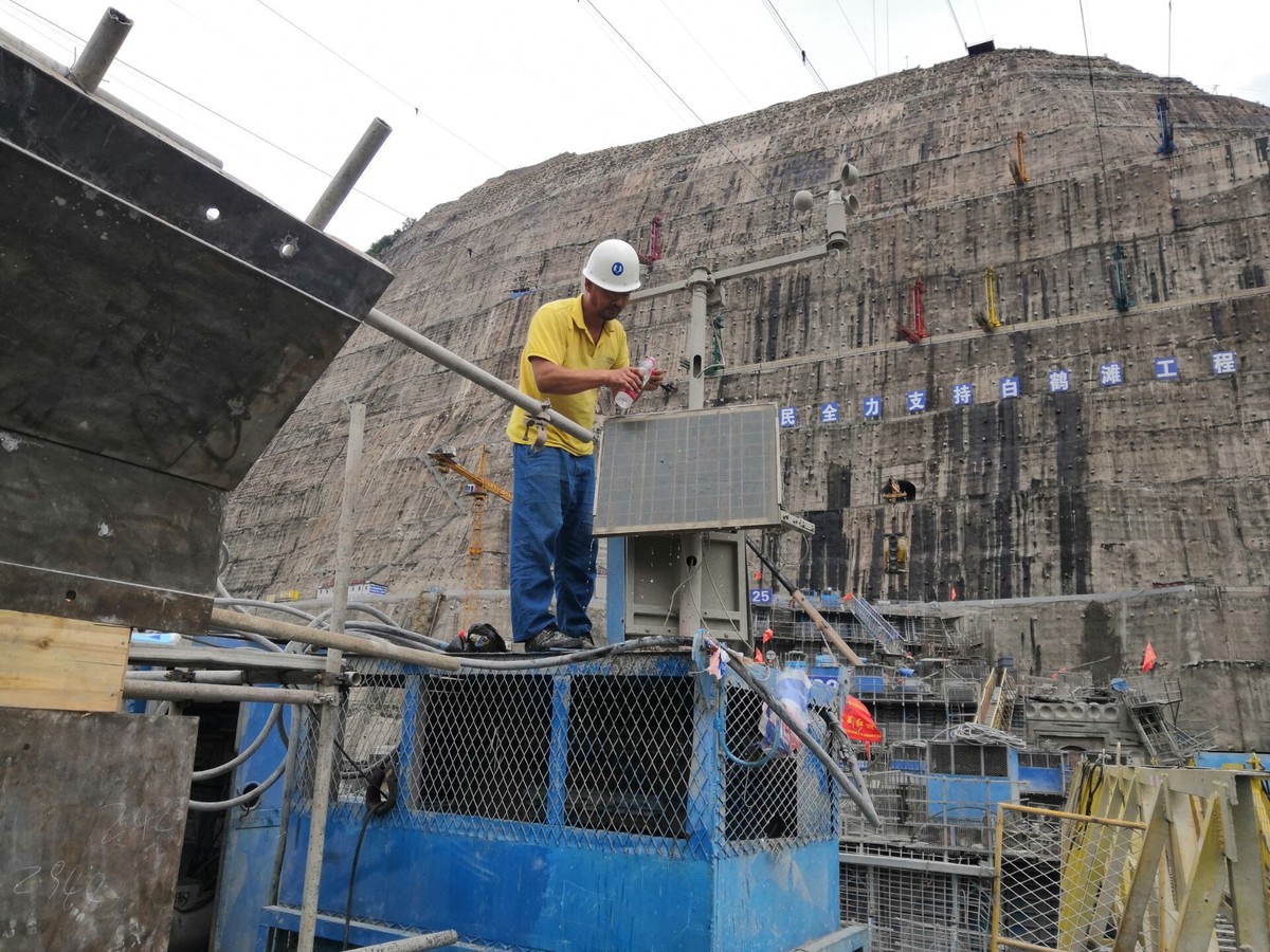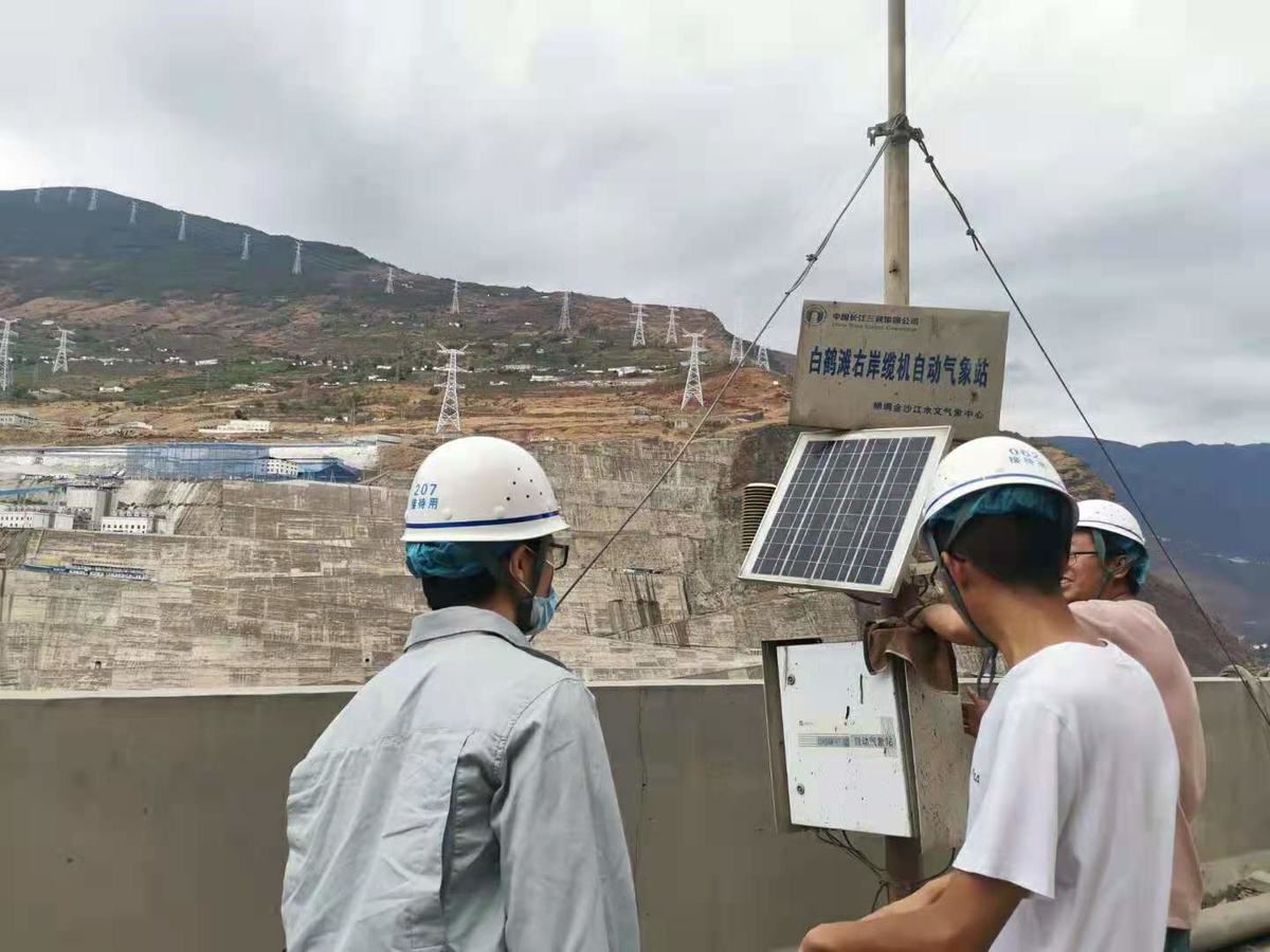 气象工作人员在白鹤滩水电站坝区安装自动气象站 。