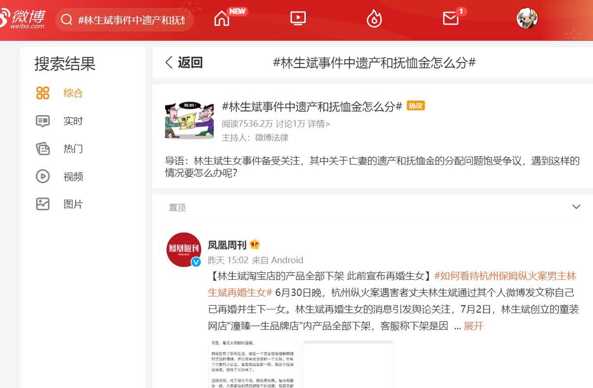 6月30日晚,杭州纵火案遇害者丈夫林生斌通过其个人微博发文称自己已再婚并生下一女。在林生斌发文后,关于亡妻的遗产和抚恤金的分配问题引起了舆论的讨论。