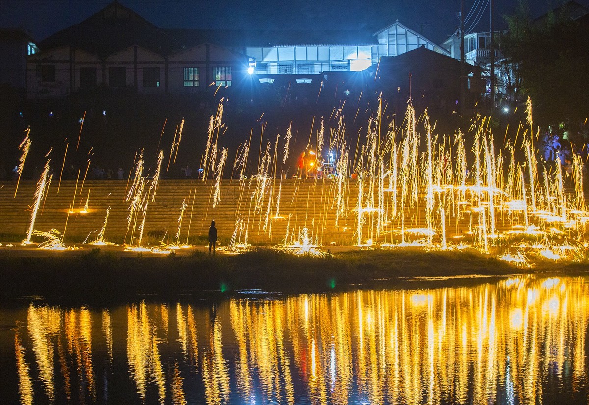 近年来,该镇在年节活动中多次举办打铁花表演,让数万游客观众大饱眼福。