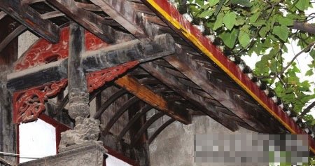 邱家祠堂房顶上的梁都是雕画(来源:华西都市报)