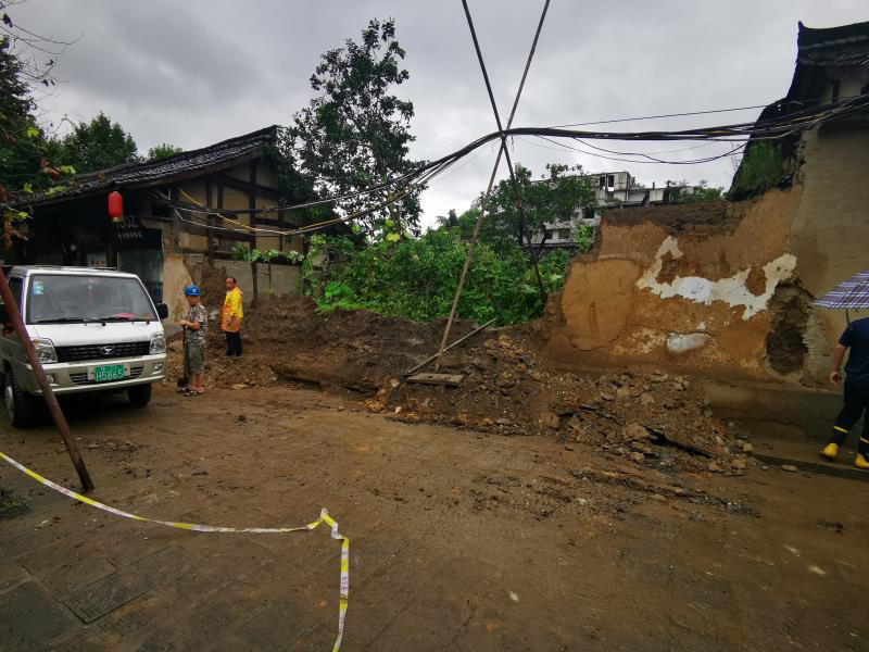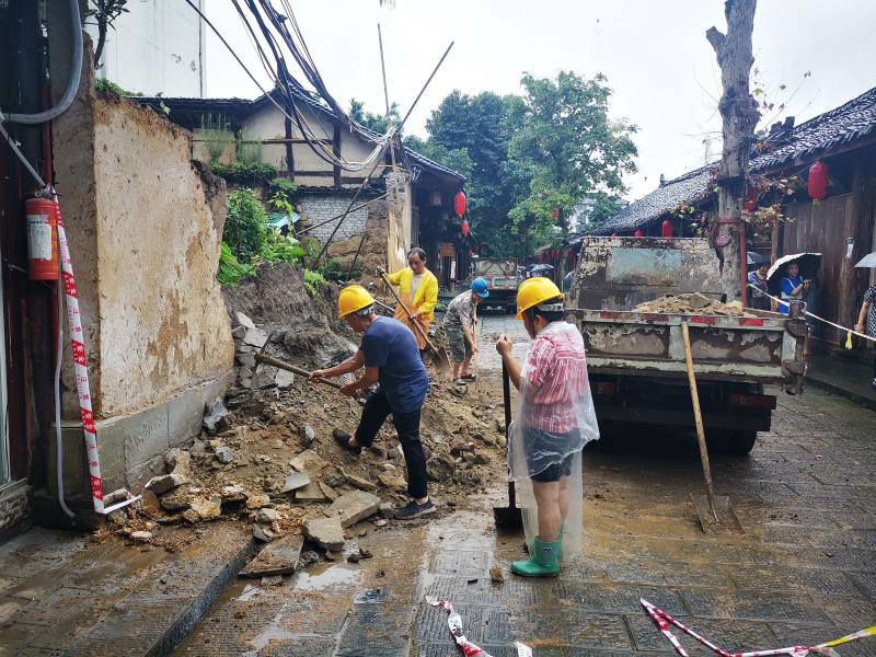 受持续暴雨影响,7月16日上午8时许,南充阆中古城学道街的一处墙体发生坍塌,无人员伤亡。经过一上午的清淤排污,散落在地的砖块和泥土目前已经被清理干净。