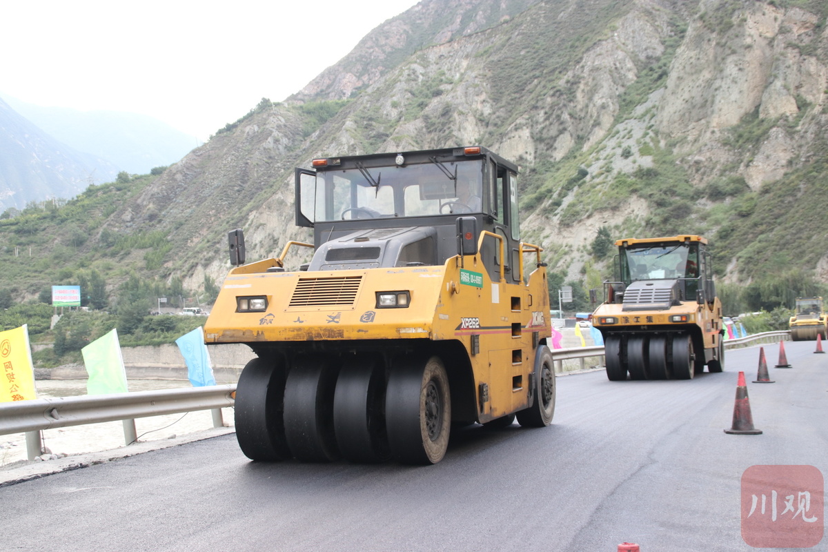 7月19日,在国道213线茂县与汶川交界处施工现场,沥青混凝土摊铺机尾部缓缓收起,这标志着国道213线松潘县解放村至汶川交界中修项目主体工程全面完工, 比原计划提前11天。