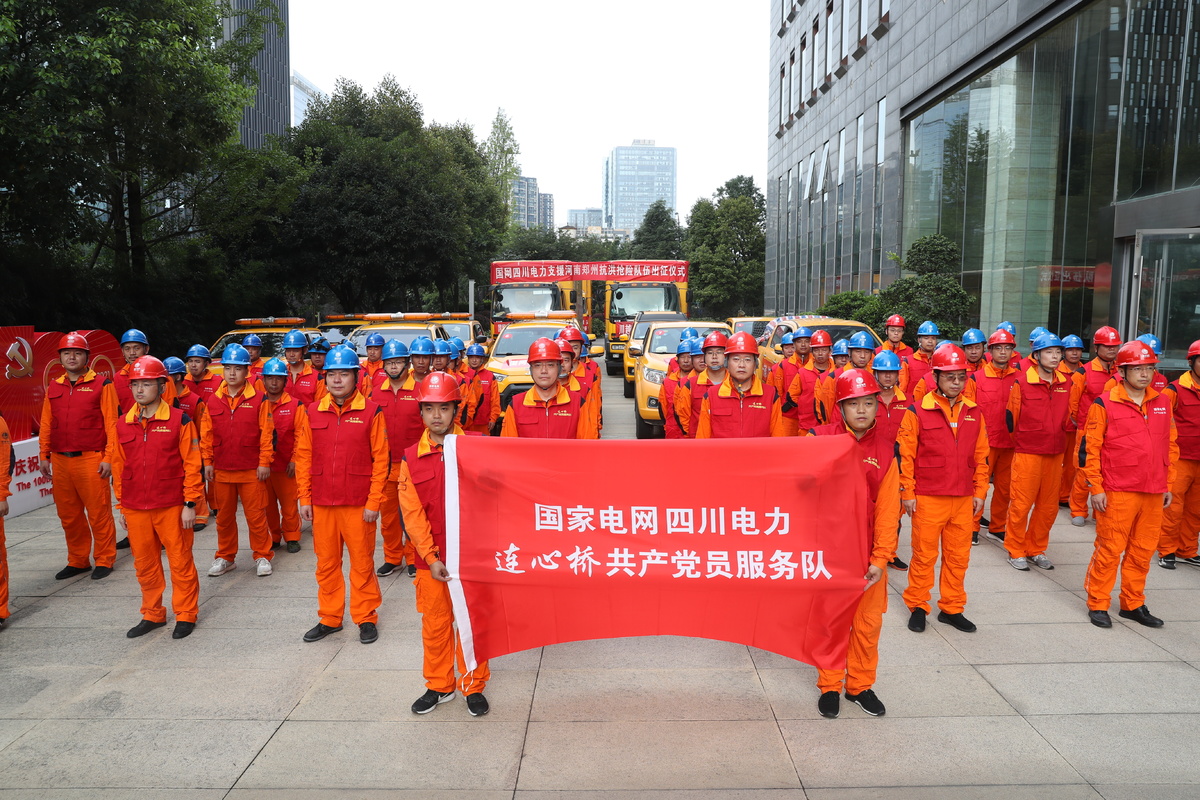 抗洪抢险专家组预计今天(7月22日)上午11时前到达郑州,剩余人员分两批,川东北地区队员预计今晚10时到达郑州,其余队员预计今晚12时到达郑州。(国网四川省电力公司供图)