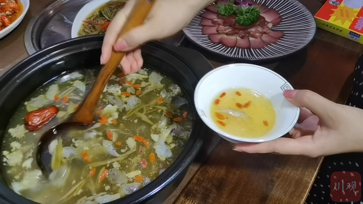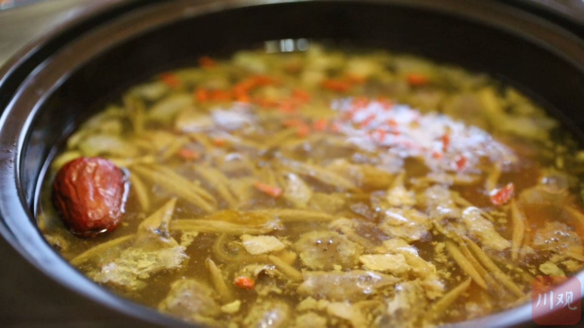 在兴文,有一家苗家风味“苗城印象锦忆荣乌鸡莼菜体验馆”的乌鸡莼菜养身汤很有名气,鲜香紧实的乌骨鸡肉,遇上爽滑细腻的莼菜,喝一口汤下去十分满足。