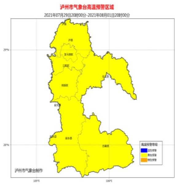 ▲ 泸州市气象台预计,7月30日到8月2日各区县晴热天气持续,大部分地方最高气温将升至38℃以上,局部地方可达40℃。