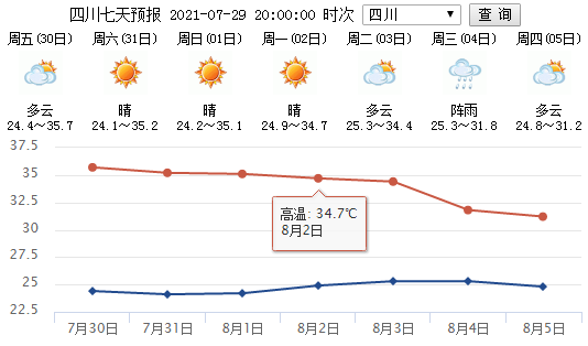 据四川省气象台预报,这样火爆的天气还要持续3天,从7月30日到8月1日,全省日平均气温都将保持在35℃以上。