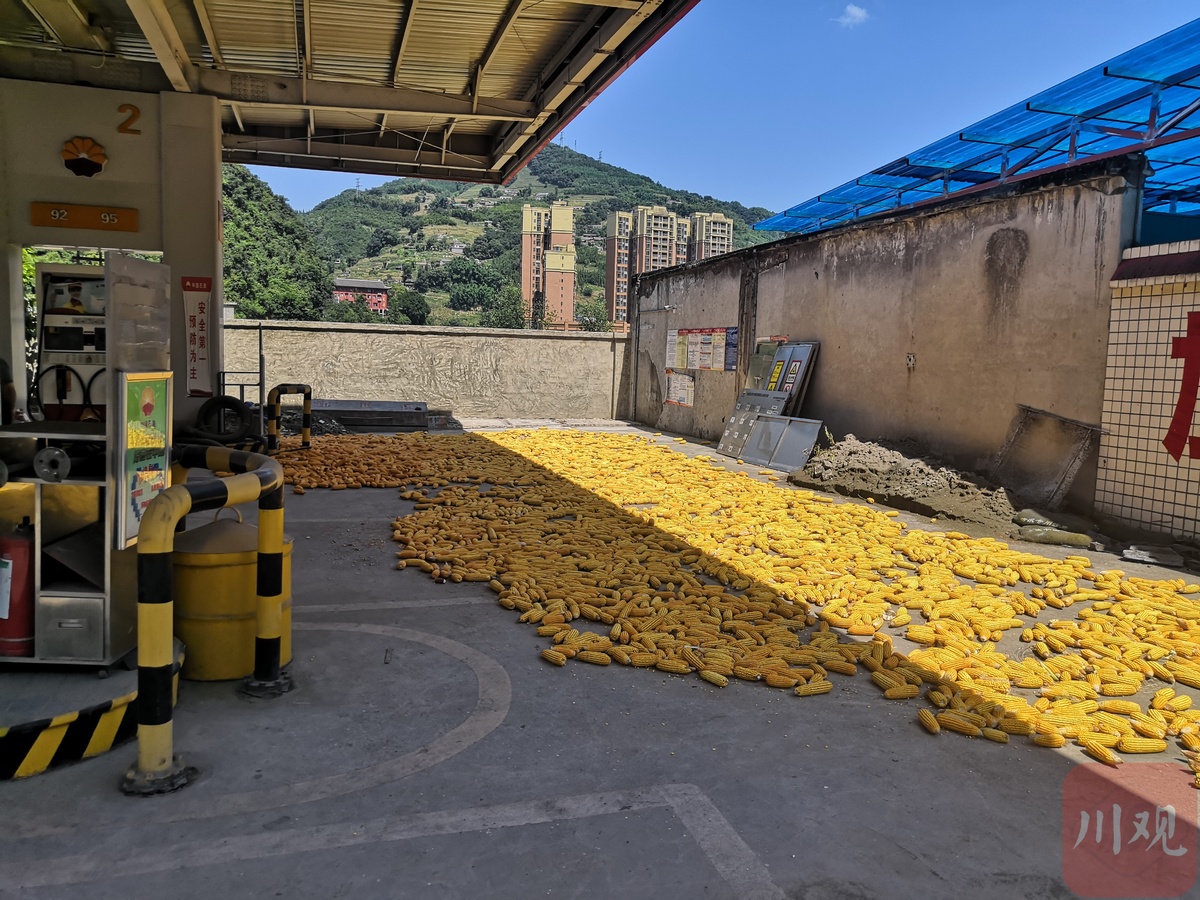 然而,奇怪地是,打围护栏却开了一个“门”,用铁丝轻轻地锁着,形同虚设、一拉就开,暗访组成员轻易进入加油站院内。院内晾晒着当地居民刚刚收获回来的一大片金黄玉米棒子。