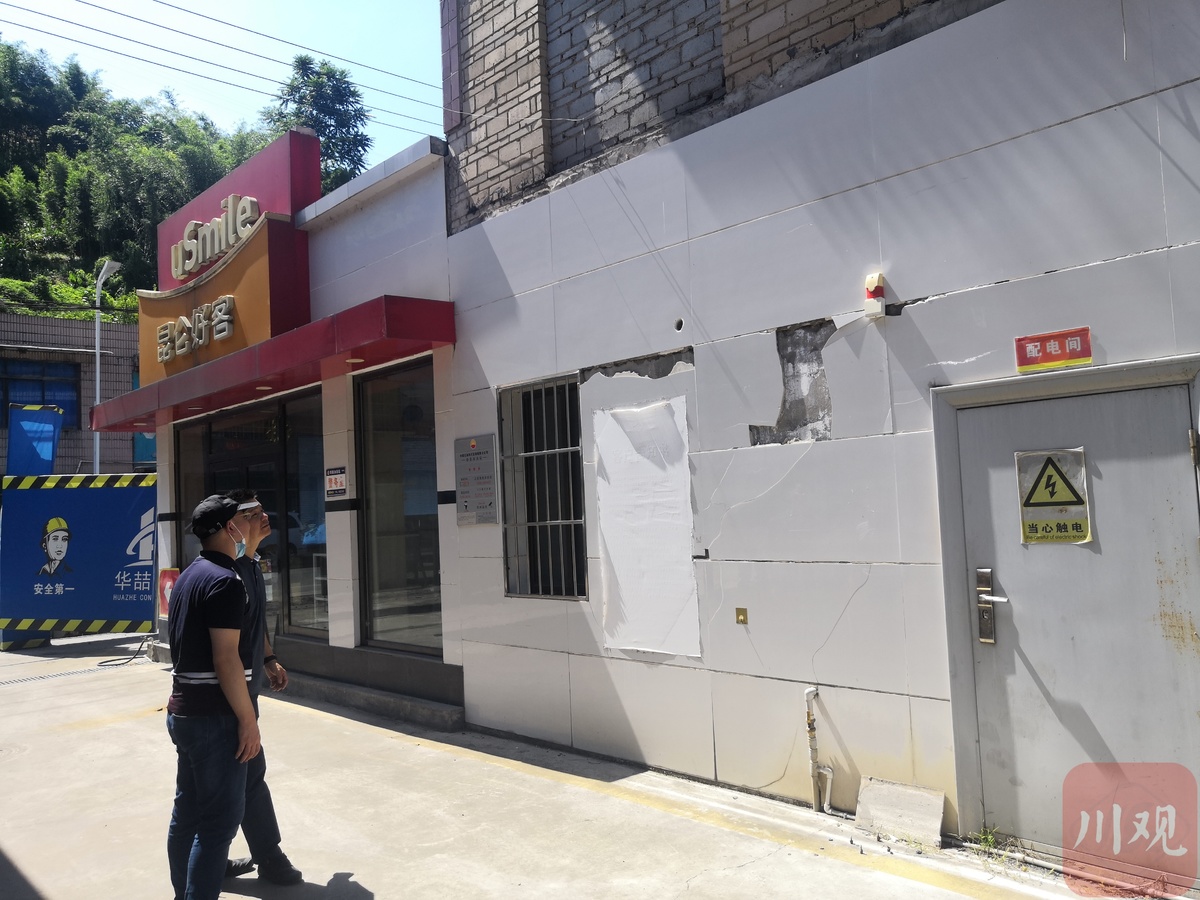刘贵林介绍,这栋三层D级危房在2019年长宁地震后被鉴定为D级危房,也是从那时候起,楼上住户进行了搬离,加油站也停止了运行。