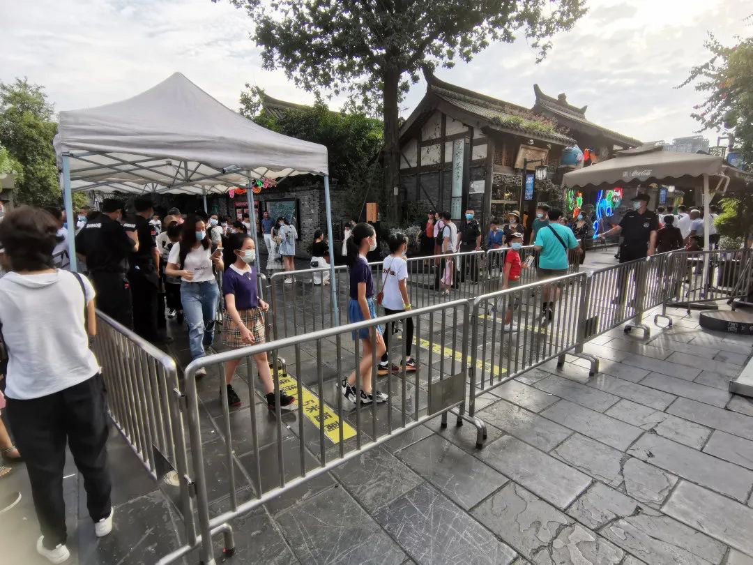 当人流达到限流上限(接待游客量不超过最大承载量的75%)时,对窄巷子东、西,井巷子东、西4个出入口实施管控,只出不进。
