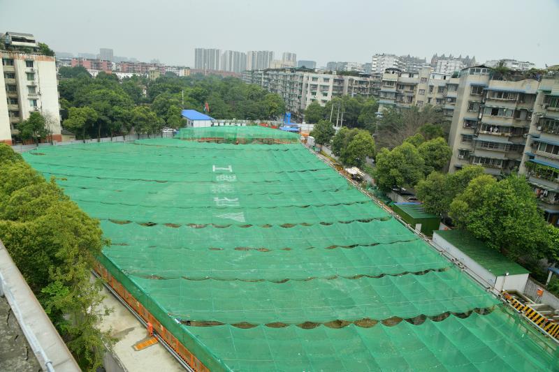 8月2日上午10时,位于成都市武侯区晋阳街道的锦乐·吉福院项目工地。一进入施工现场便能看到基坑上方被一幅幅绿色防尘密目网组成的4500平米大的“天幕”所覆盖,每个防尘幕单元之间的喷淋装置形成飘飞的水雾,为施工现场营造出良好清新的空气环境,也为炎炎夏日带来一抹清凉。
