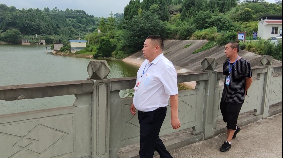 金堂湾水库安全巡查责任人在巡查水库大坝。邵明亮 摄