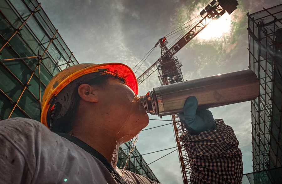 高温!我省部分地区最高气温已超40℃。持续多日的高温酷热天气还没有“歇一歇”意思,“炙烤”模式笼罩全省。有这样一群人,他们依然奋战在工作一线,与烈日“抗争”。