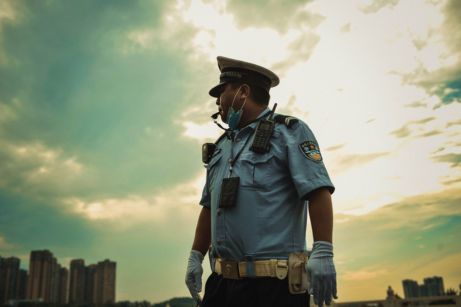 7月30日, 内江交警坚守岗位,经受着炙热的“烤验”。