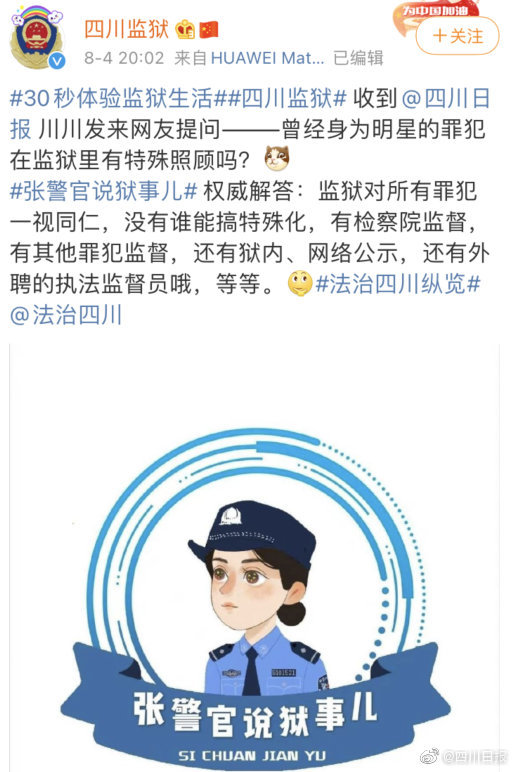 8月4日,四川监狱抖音号和四川日报微博推出短视频作品——《监狱官方30秒 带你了解罪犯改造生活》。视频一经发布,罪犯服刑日常的内容引发网民极大关注。网友们纷纷提问,对此四川监狱发来权威解答。